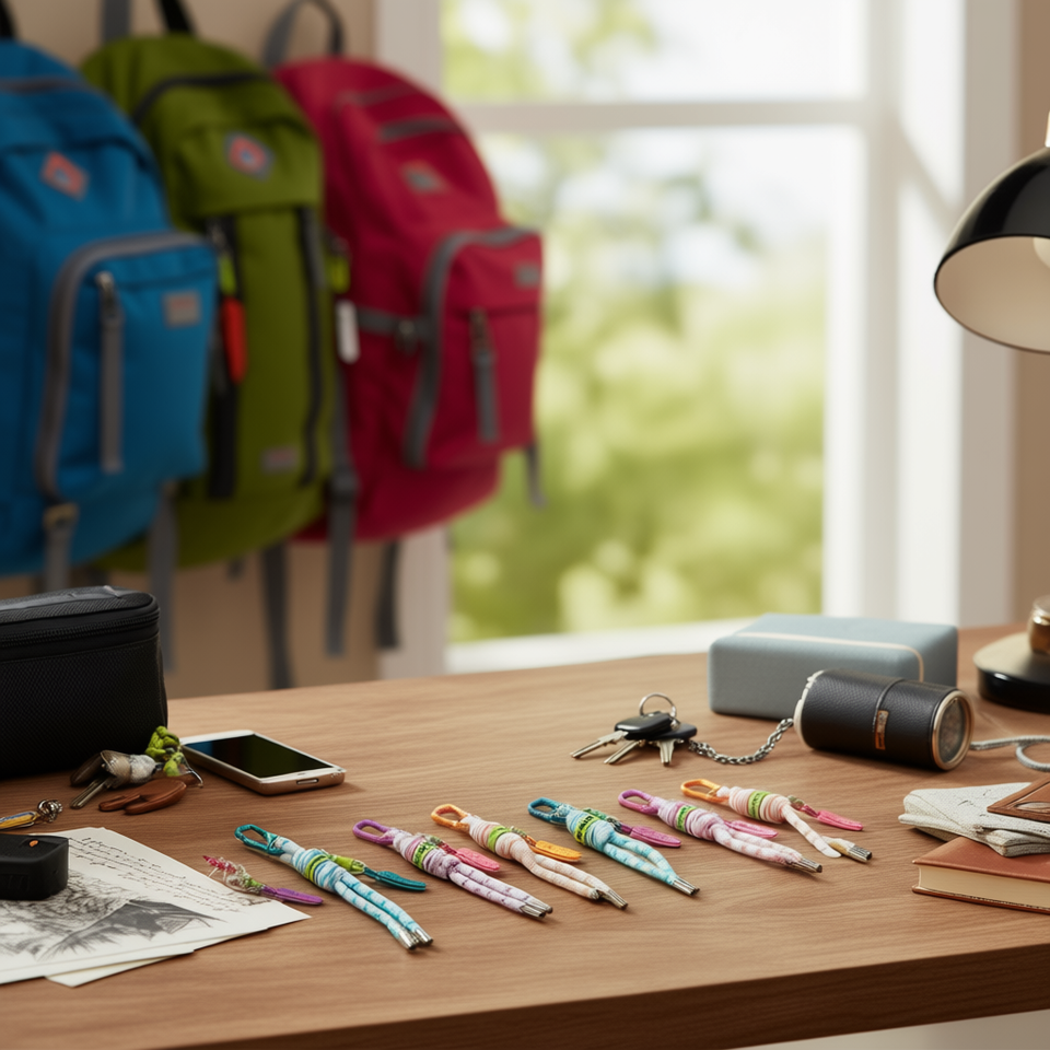 Portachiavi con cordino in piume, cordino intrecciato colorato con moschettone per chiavi e borse, 600 pezzi per scatola