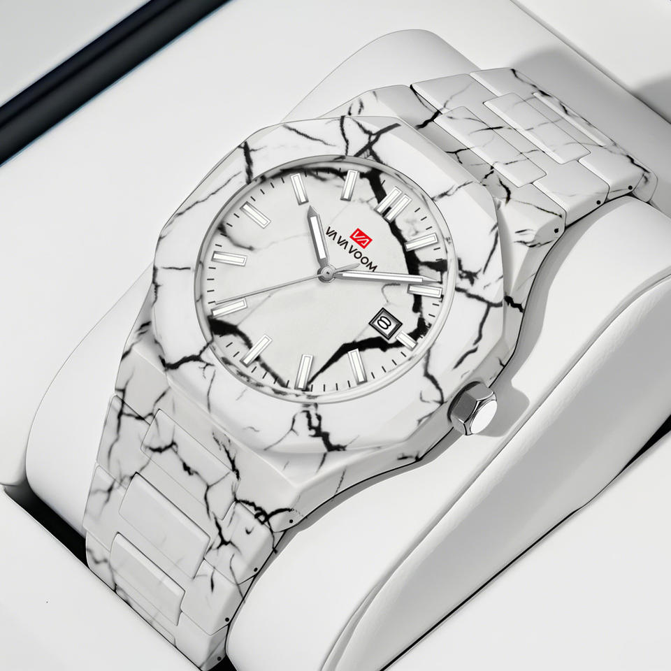 Con motivo in marmo realizzato in lega di grande vetro analogico orologio da polso orologio al quarzo impermeabile calendario da uomo di fascia alta