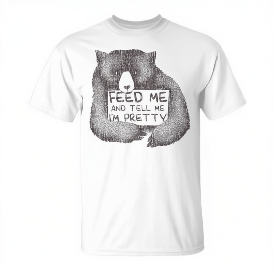 Maglietta 'Nutriscimi e dì che sono bella' con orso bruno