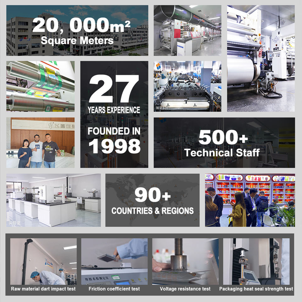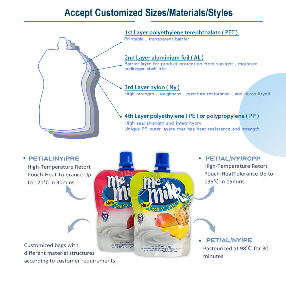 Materiale stratificato: Il materiale stratificato a più strati garantisce durata e protezione dall'umidità, rendendolo ideale per l'imballaggio di contenuti liquidi e solidi.