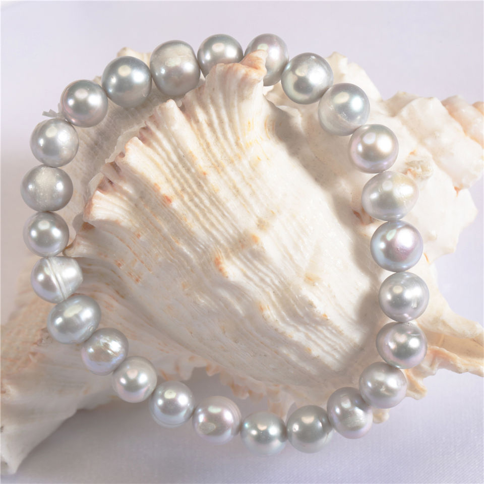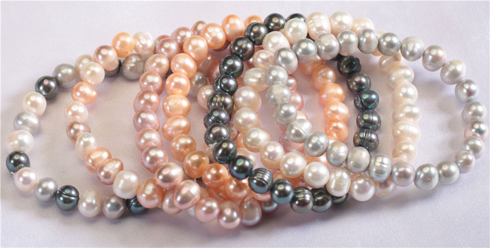 Feirun 8-9mm Potato Near Round 925 Sterling Silver Fresh Water Genuine Freshwater Real Pearl Bracelet Bangle Bracelet