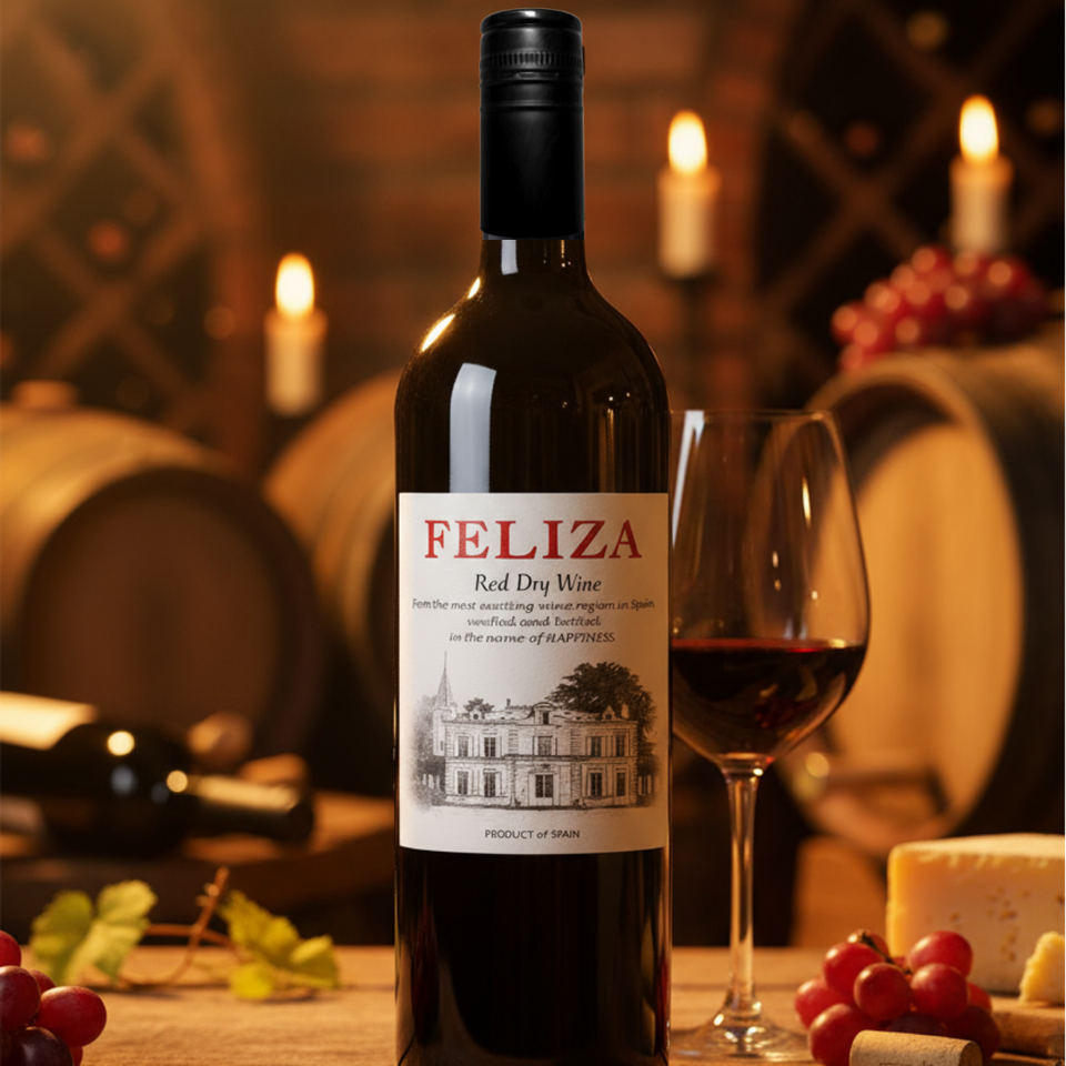 Vino Rosso Secco Feliza Garnacha e Tempranillo 11% Vol Alcol Livello Base 0,75Lt Da Castilla La Mancha Spagna