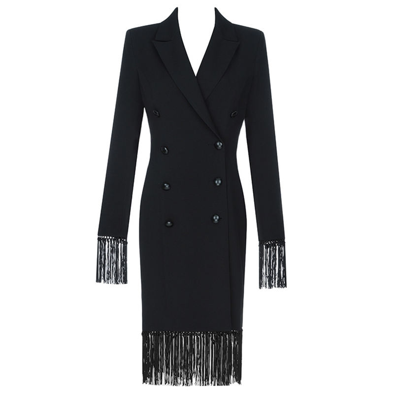 Product Name:Feminine v neck ladies stylish fringe double breast blazer dress