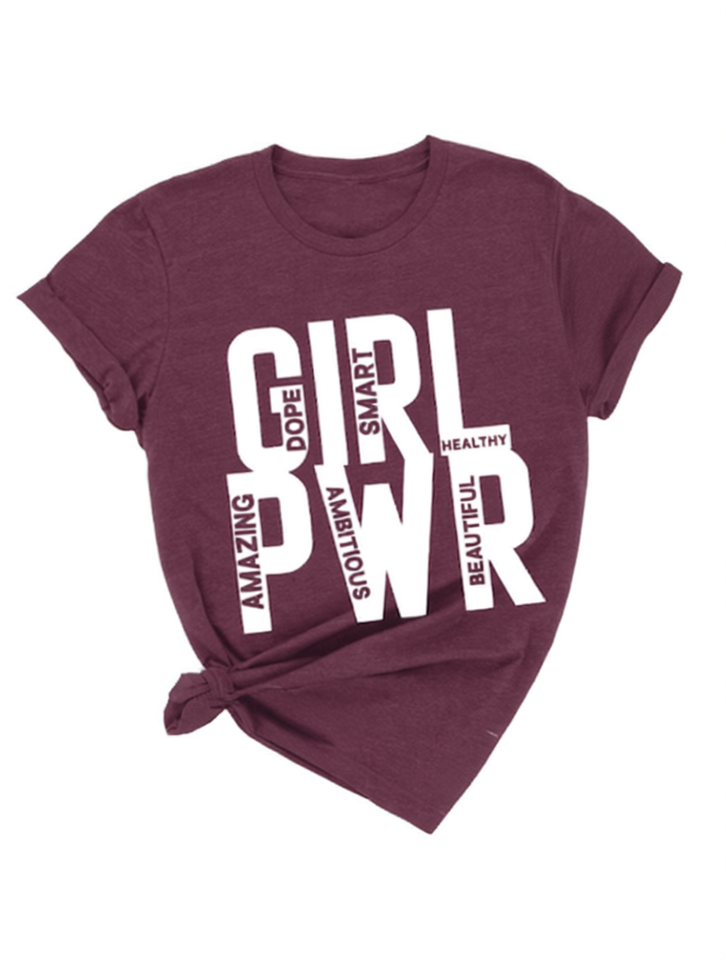 Feminist Girl Power T-Shirt Women's Casual Crew Neck Short Sleeve 100% Cotton Loose Fit Printed Jersey Shirt