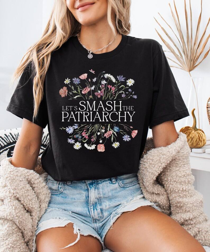 Feminist T-Shirt Women's Short Sleeve Crew Neck Floral Print 100% Cotton Casual Equality Top For International Women's Day