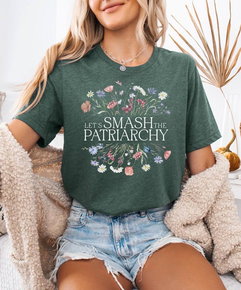 Feminist T-Shirt Women's Short Sleeve Crew Neck Floral Print 100% Cotton Casual Equality Top International Women's Day Gift