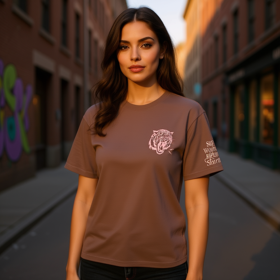 Feminist Women's Graphic Tee Cotton Crew Neck Loose Fit All Seasons Shirt With Tiger Logo And Text Print