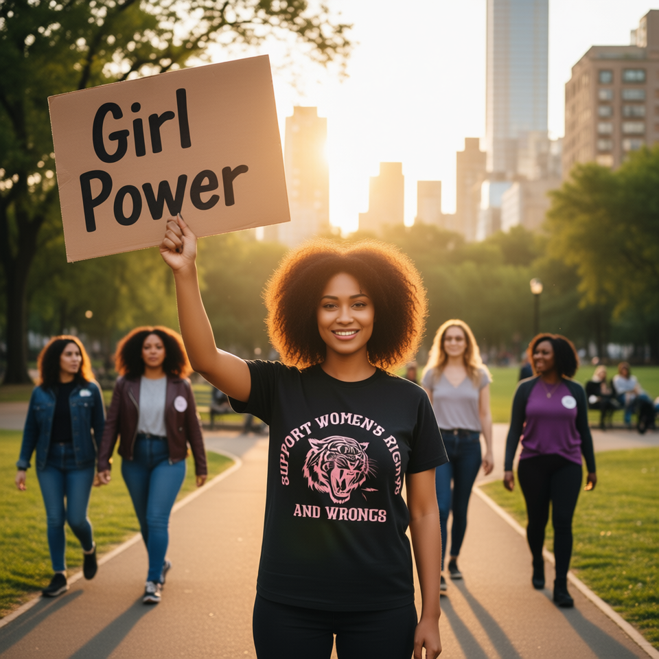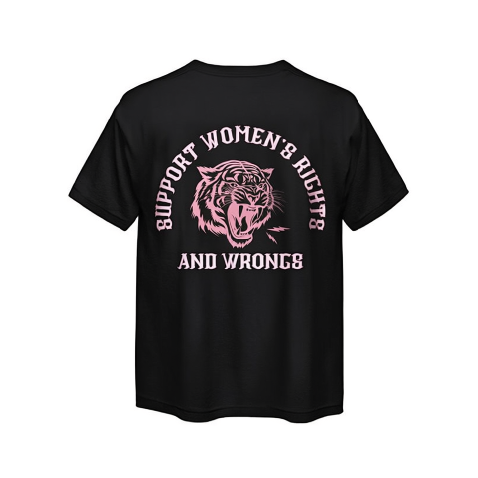 Feminist Women's Graphic Tee Support Women's Rights And Wrongs Tiger Print Cotton T-Shirt Regular Fit Crew Neck Short Sleeve