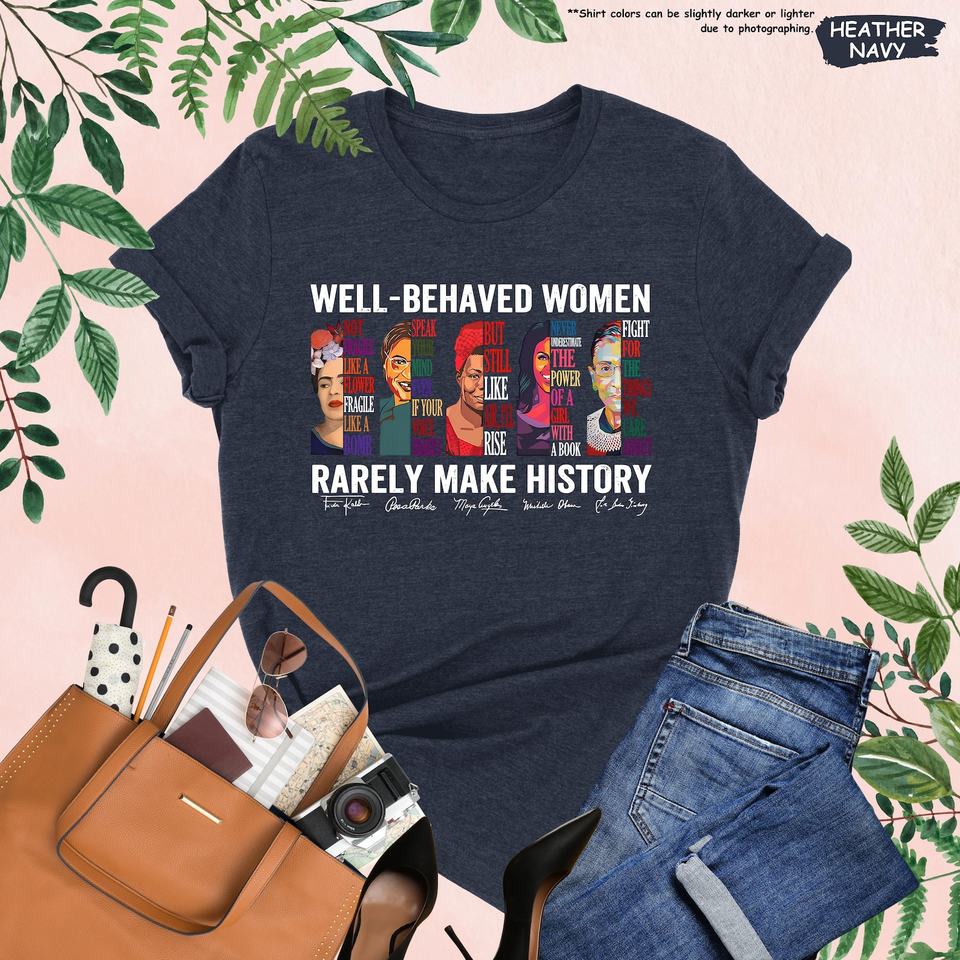 Feminist Women's T-Shirt Well Behaved Women Rarely Make History Print Casual Crew Neck 100 Cotton Regular Fit Short Sleeve