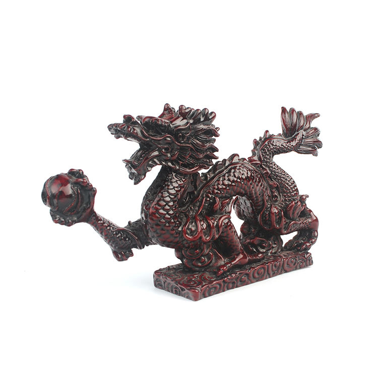 Feng Shui Ball Chinese Dragon Resin Statue Artistic Painted Indoor Decoration