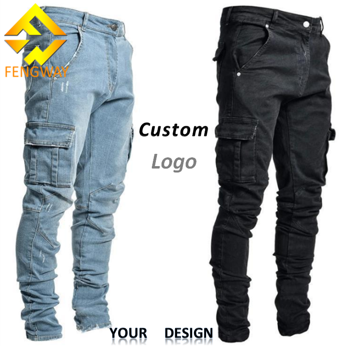 Jeans Slim Fit da Uomo Fengway, Pantaloni Denim a Vita Media con Lavaggio Sbiancato, Stile Trendy con Tasche Laterali