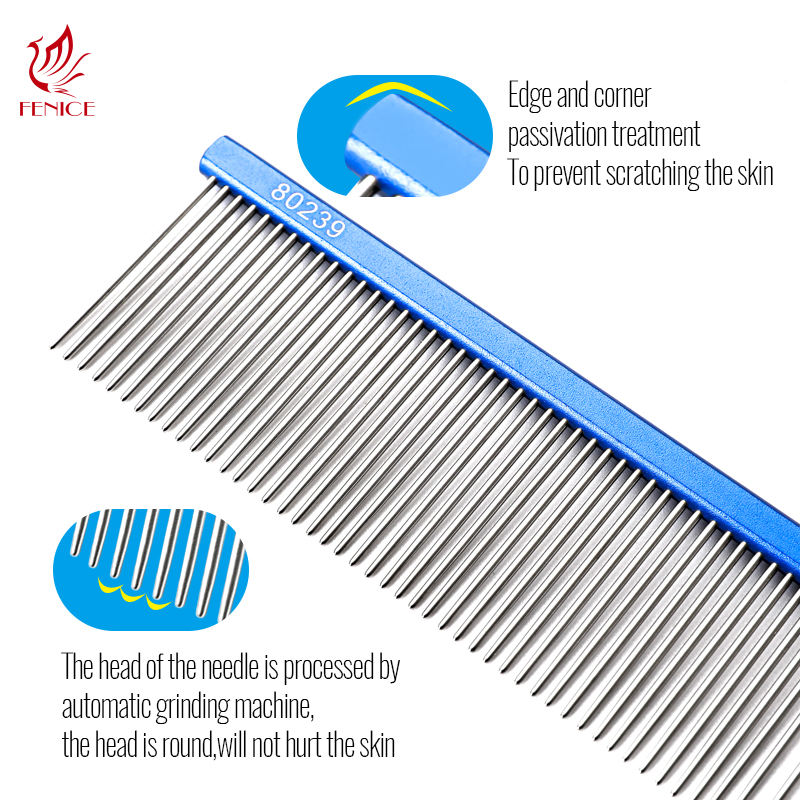 Fenice pettine per cani spazzola per la rimozione della pelliccia dei capelli lunghi e spessi pettine per pulci per peli di animali domestici spilla in acciaio per cani e gatti per cani Shaggy Barber