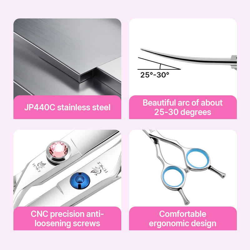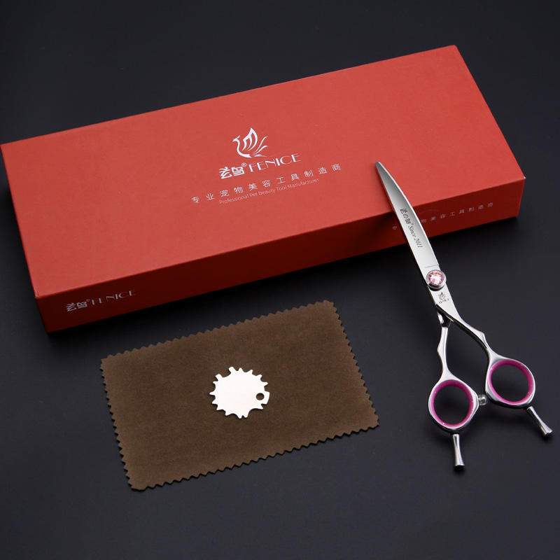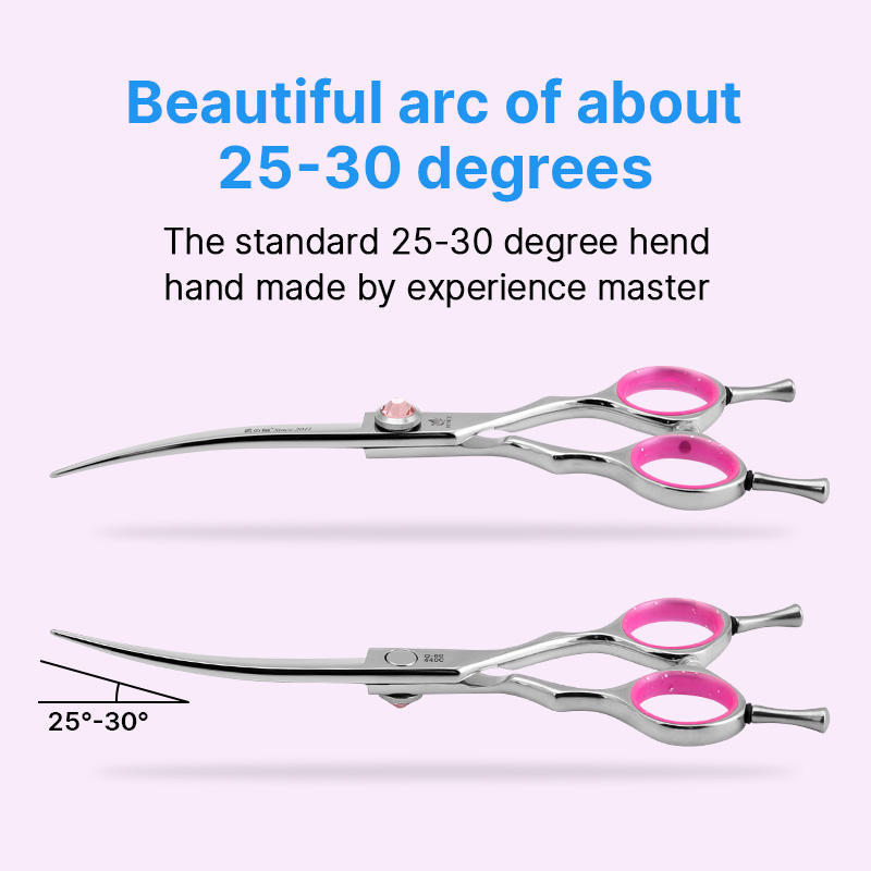 Forbici Professionali per Toelettatura Cani Fenice Punta Curva Q-60 Acciaio Inossidabile 6.5 6 Pollici Ecologiche Sicure per Principianti Uso Domestico Animali Domestici