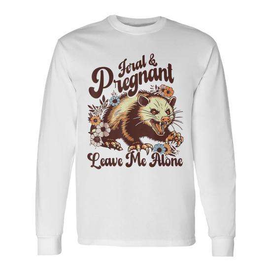 Maglietta a maniche lunghe con stampa di opossum che mi lascia in pace, selvaggio e in gravidanza