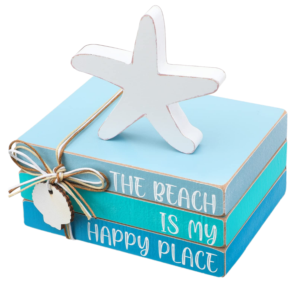 Set di 4 Pezzi Ferdinand per Arredamento Rustico, Vassoio a Più Livelli in Legno Ispirato alla Spiaggia, Mini Pile di Libri in Legno per Decorazioni Casa al Mare