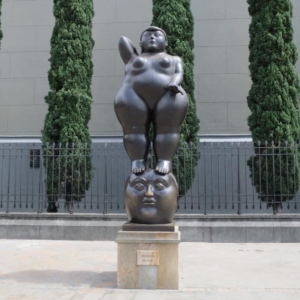 Scultura in Rame Stile Fernando Botero, Statua in Bronzo a Grandezza Naturale di Donna Nuda Seduta, Raffinata e Formosa