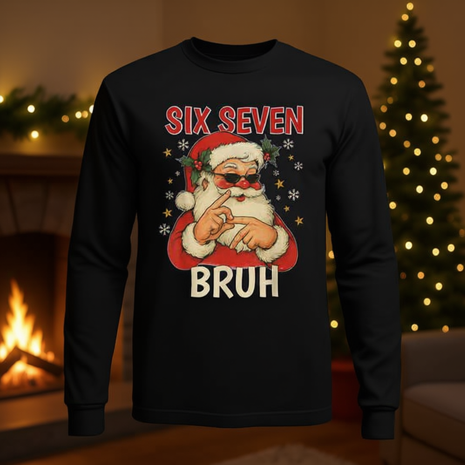 Maglietta Natalizia a Maniche Lunghe con Stampa Numerica per Adulti, Unisex, Girocollo, Abbigliamento per Feste, Top in Cotone