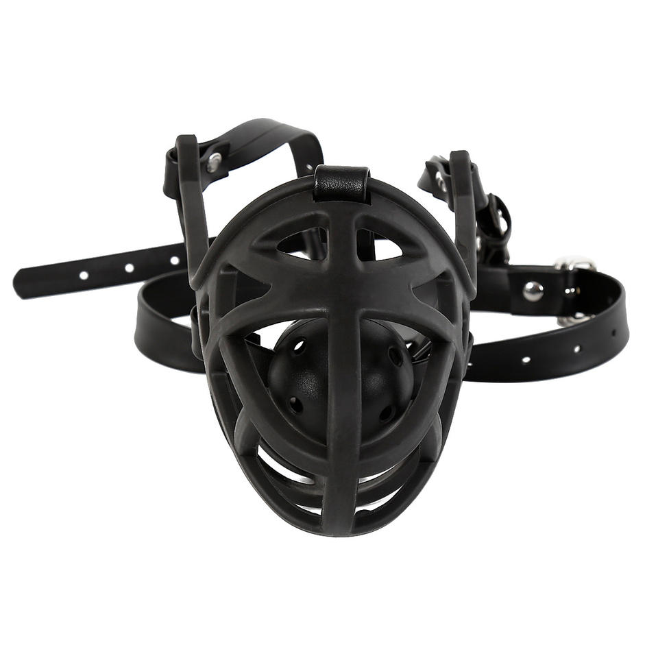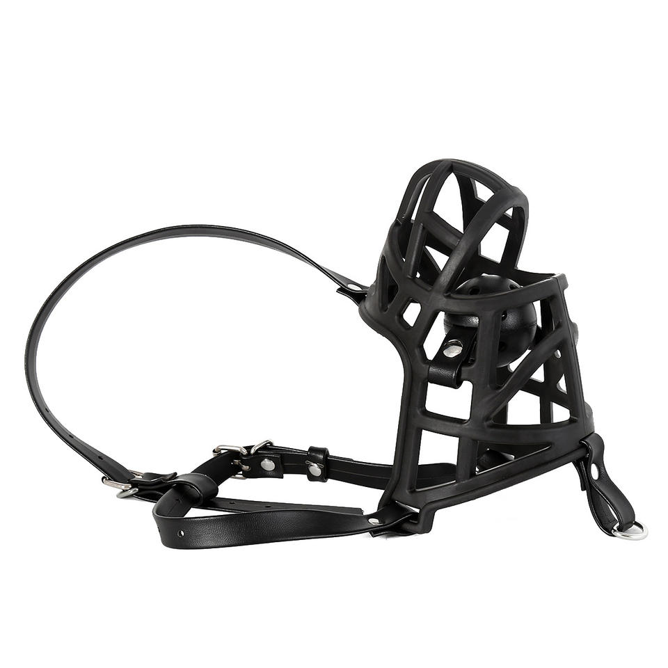 Fetish Mask Sex Toys Kinky Anti-bite Mask With Mouth Plug Ball Gag Dog Muzzle Black Pu Leather Sex Tool