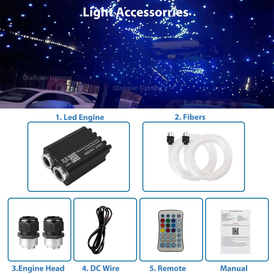 Kit Cielo Stellato a Fibra Ottica LED per Auto, Illuminazione Effetto Stelle Cadenti per Tetto e Interni