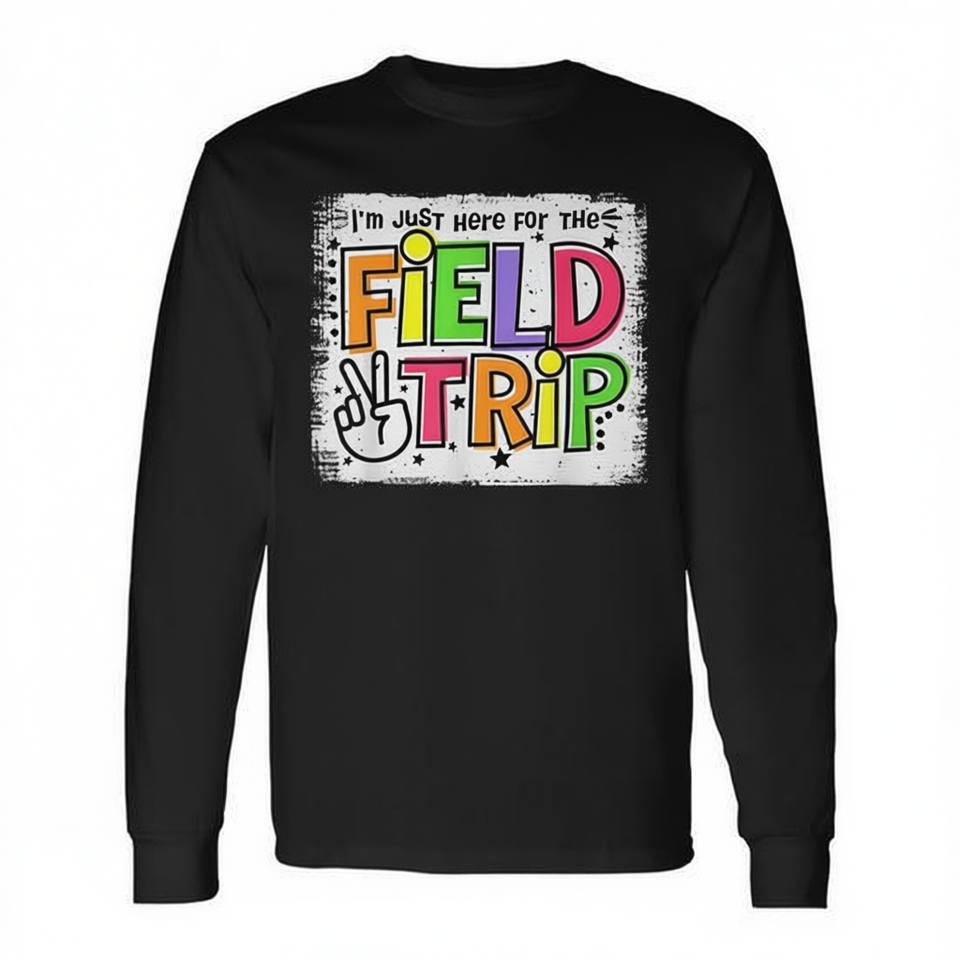 T-shirt a maniche lunghe Field Trip per bambini, girocollo unisex, divertimento per il ritorno a scuola