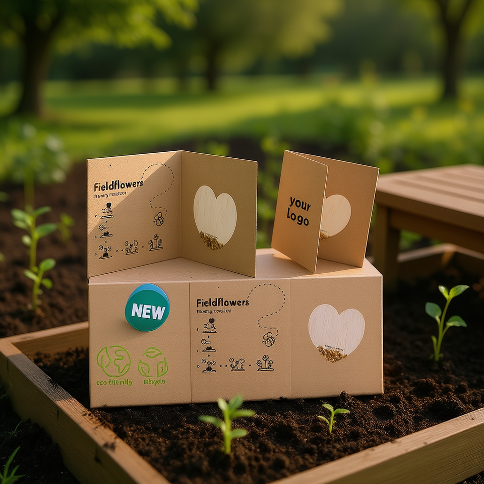 Vasi da Coltivazione Eco-Friendly Fieldflowers Heart Seed Paper in Fibra Vegetale Riciclabile, Capacità 105ML, Made in Italy, White Label
