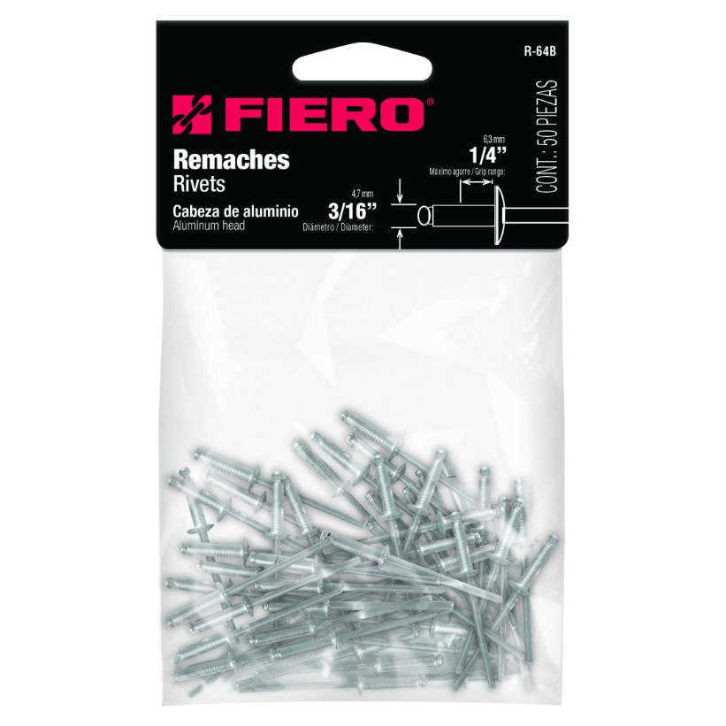 Fiero R-64B Flat Dome Head Solid Rivets 3/16' X 1/4' 50-Pack-Steel Aluminium Plastic with Din Standard Plated