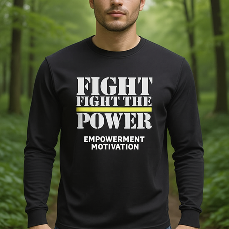 T-shirt a maniche lunghe Fight The Power con citazione motivazionale e di potenziamento