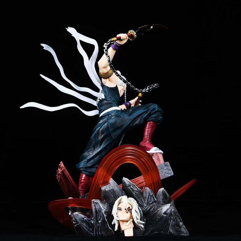 Figuras Anime 29cm effetti speciali doppio coltello modalità cacciatrice di demoni figure Anime Uzui Tengen Kimetsu No Yaiba Figuras