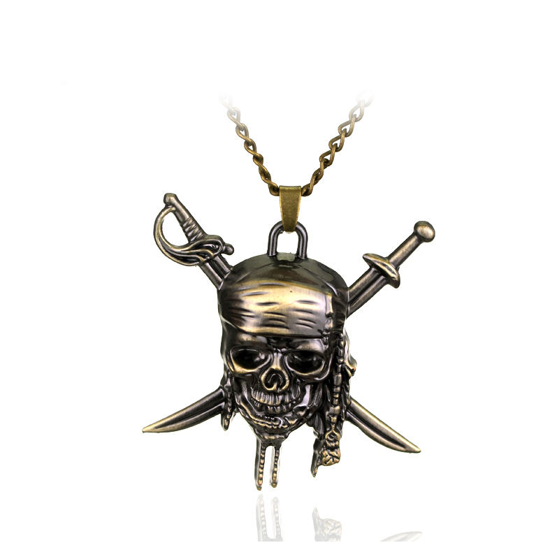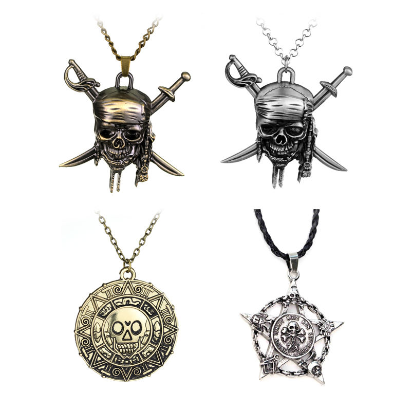 Film Pirates Aztec Coins Vintage Medallion Skull Pendant Necklace for Men