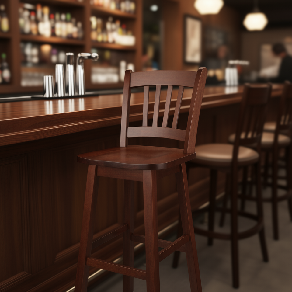 Sgabello da Bar Fina in Noce con Seduta Girevole, Design Tradizionale, Arredamento Commerciale