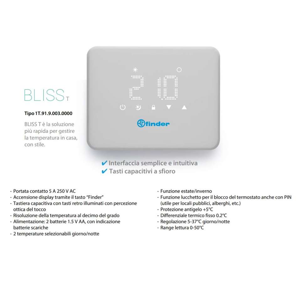 Finder Digital Thermostat 1T9190030000 1T Series White Smart Home HVAC Control