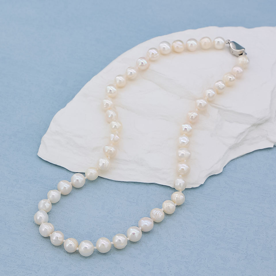 Fine 925 Silver Jewelry Design Mother's Day Gift Pearl Necklace Jewelry Sets 8-9mm White Natural Freshwater Pearl Necklace Women