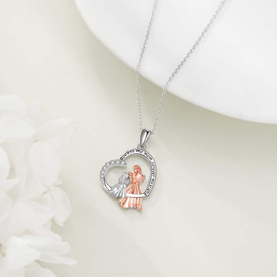 Fine 925 Sterling Silver Always My Mom Forever My Friend Family Necklace Mother Day Gift Jewelry