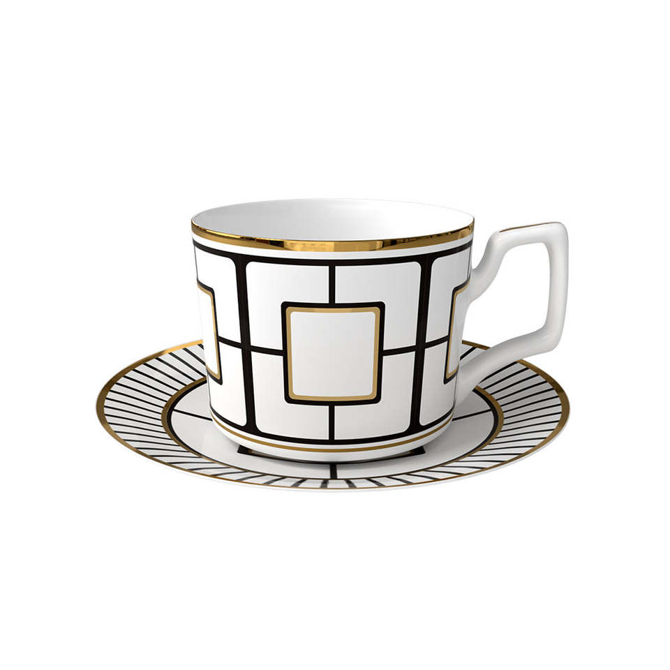 Fine Bone China Dinnerware Set Black and White Porcelain Plate Dish with Coffee Elegant Wedding Rental for Food Serving