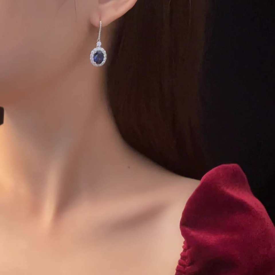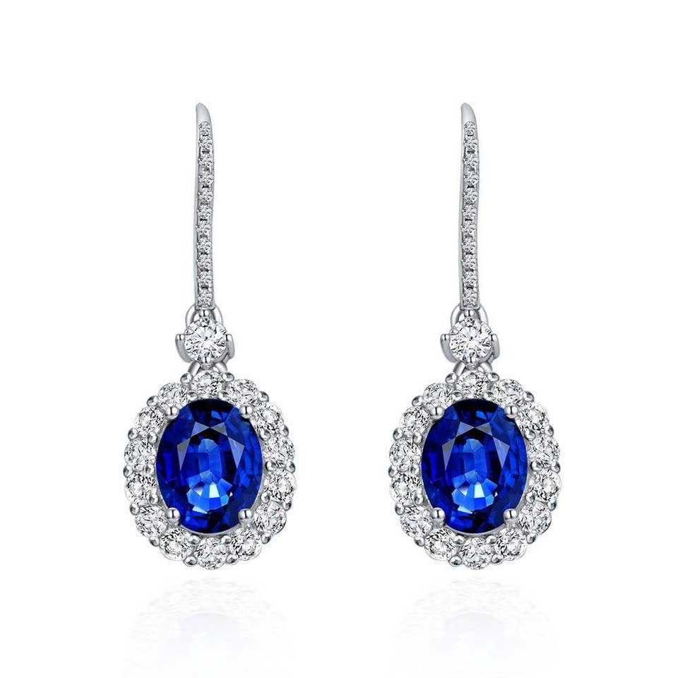 Gioielli di lusso in argento 925 sintesi di gioielli da sposa blu zaffiro taglio ovale 7mm * 9mm 925 orecchini in argento Sterling