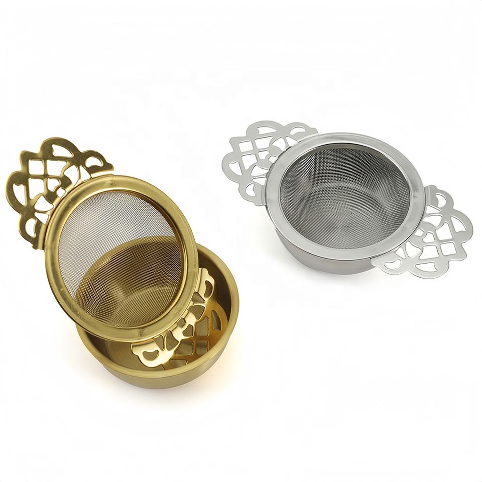Filtro filtro per il filtro per il tè in acciaio inox a doppia ala estensore per tè infusore con ciotola per gocciolamento