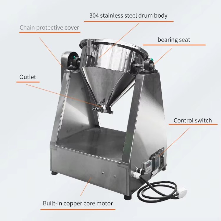 Miscelatore per Polveri Metalliche Fini, Macchina Miscelatrice a Doppio Cono, Blender a Doppio Cono