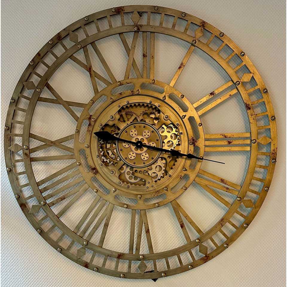 Finn XXL 110 cm Industrial Metal Silver Grey Wall Clock Large Decorative Single Face 10 Inches in Size