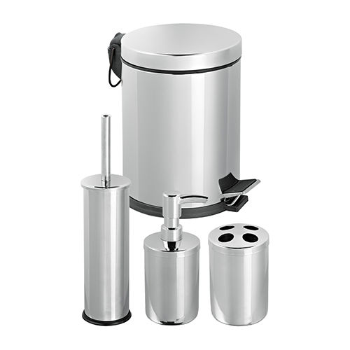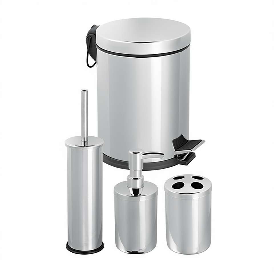 Set Bagno Fiordaliso 4 Pezzi Cromato, Larghezza 25 Cm, Altezza 31 Cm, con Cestino, Portaspazzolino, Dispenser Sapone e Scopino WC