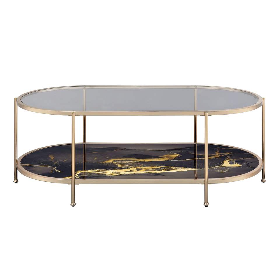 Tavolino da Caffè Fiorella con Stampa Marmo Nero, Vetro e Finitura Champagne