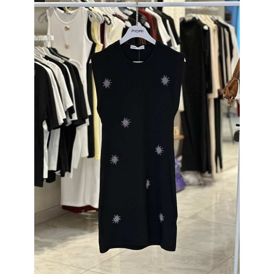 Fiori Sleeveless Knitted Dress Crew Neck Loose Fit Star Embellished Casual Daily Wear