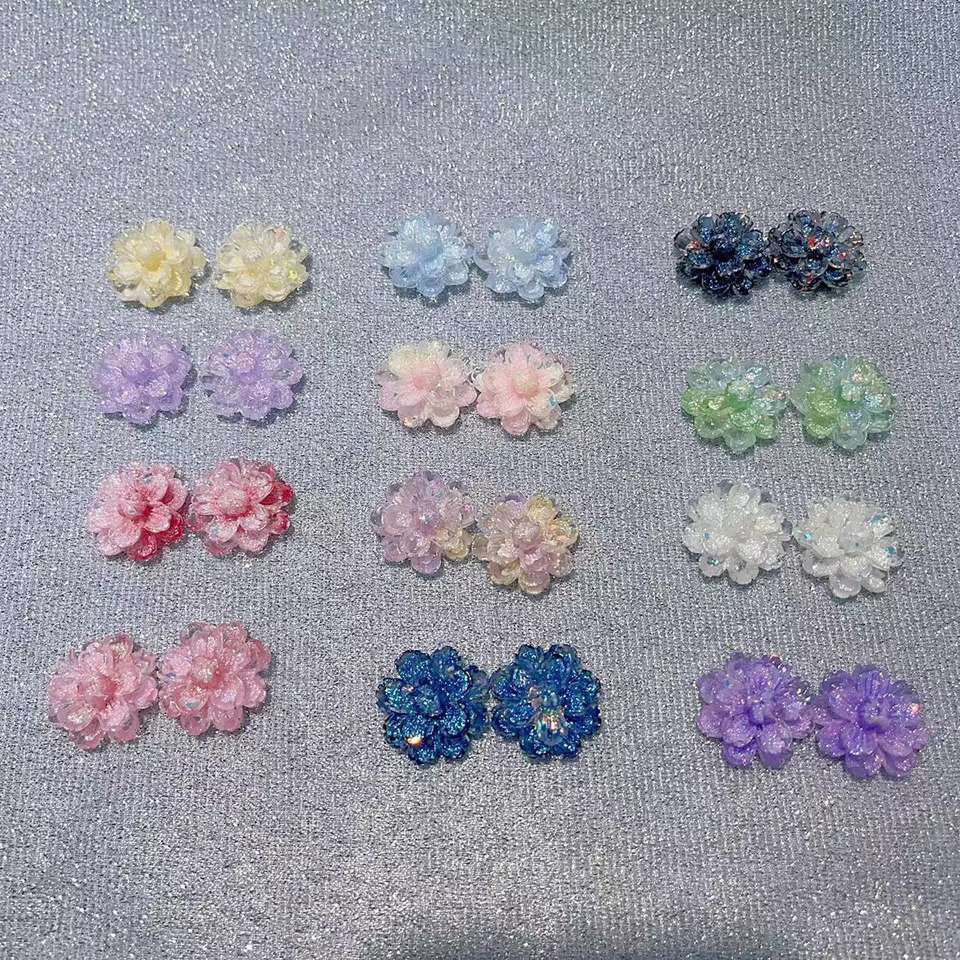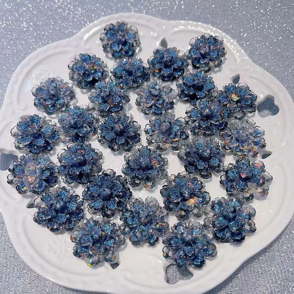 Firefly Suspended Ice Through Double Hibiscus Flower 2.3cm Handmade DIY Jewelry-luminous Resin Flower