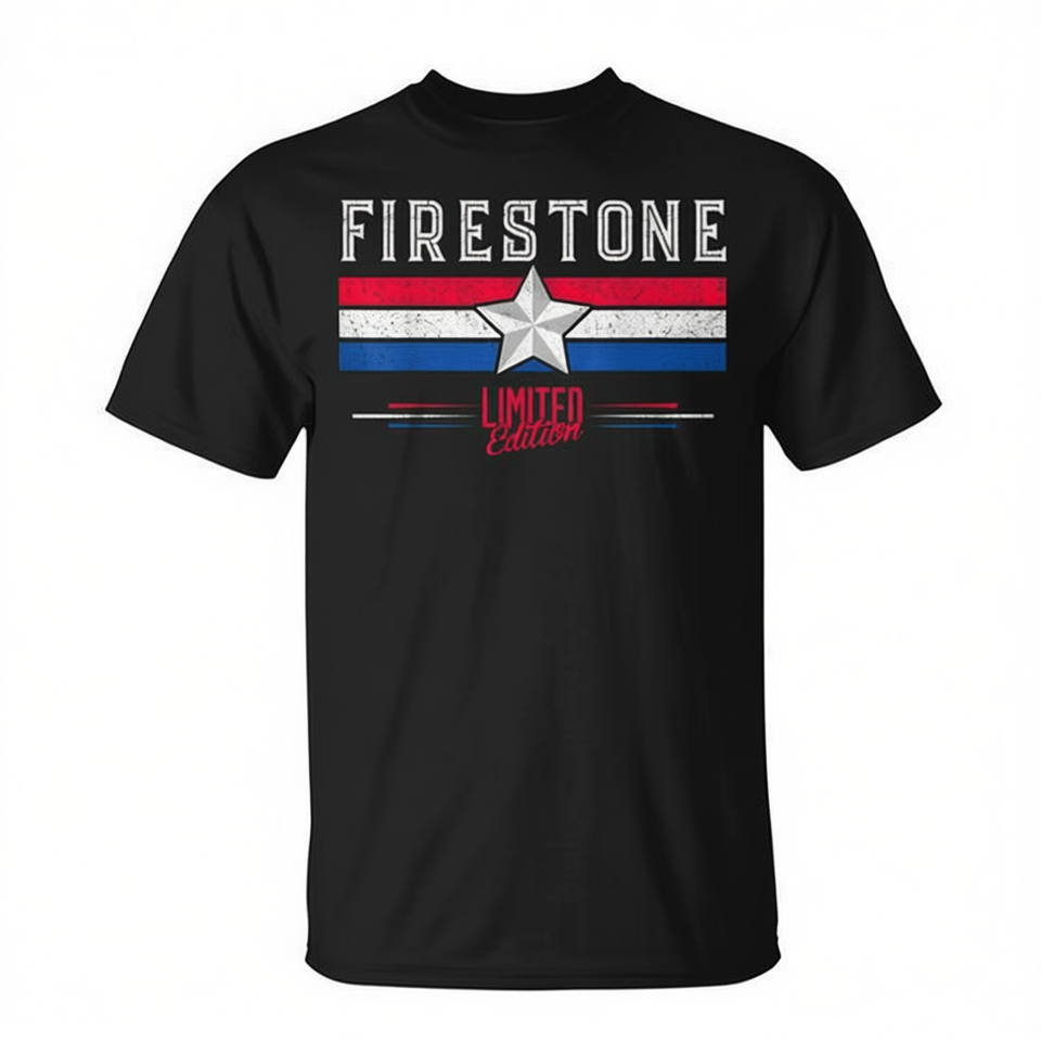 T-shirt Firestone retrò vintage per donna, uomo, bambino, stile vintage promozionale per tutti