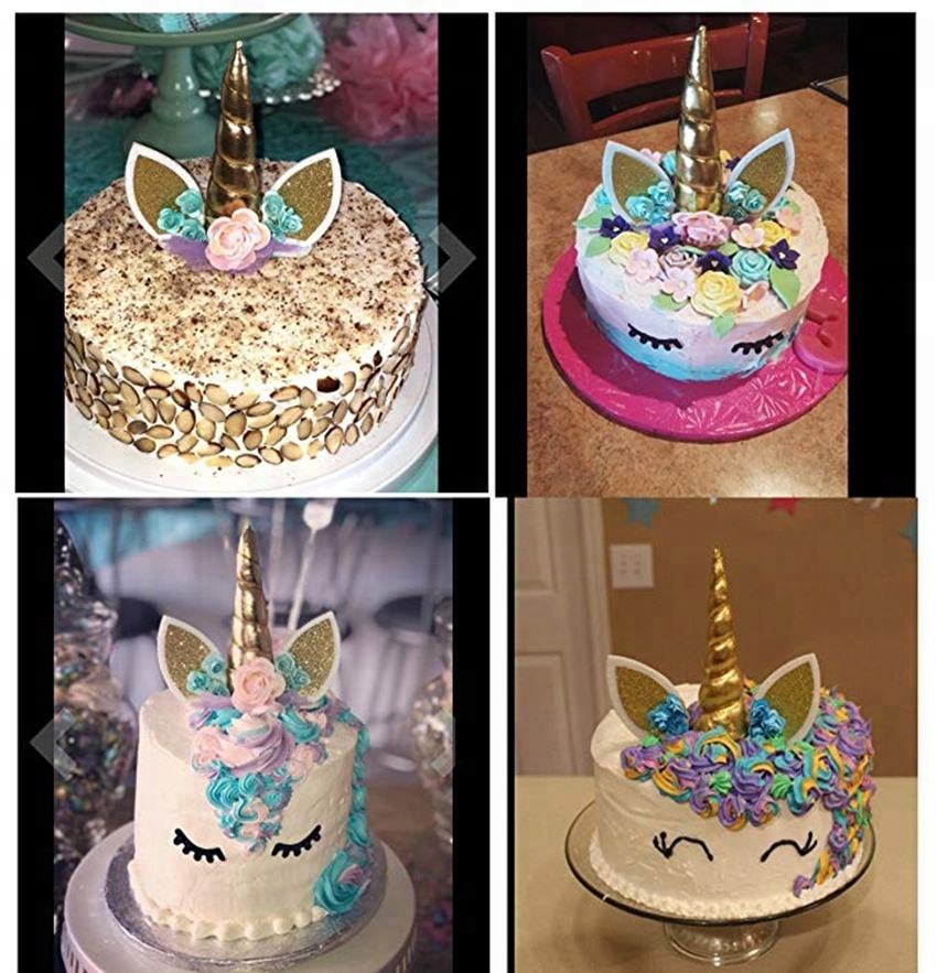 Nome:Set di Toppers per torta di compleanno unicorno fatto a mano in oro