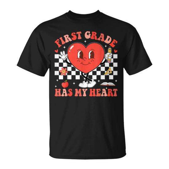 La prima elementare ha il mio cuore, maglietta per insegnanti di San Valentino, nera, per adulti, unisex