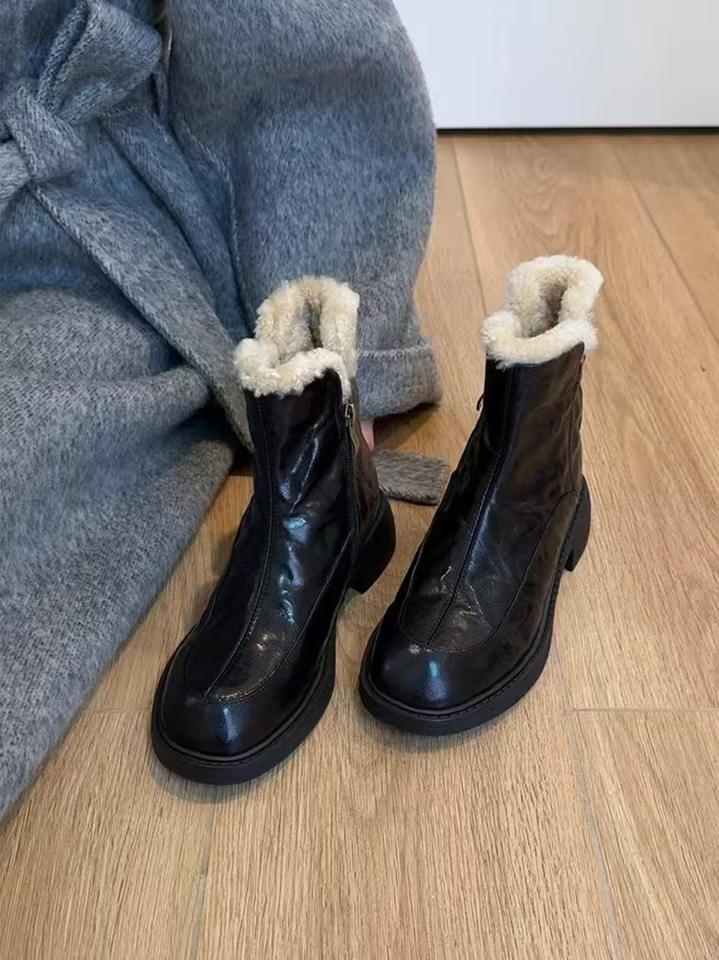 First-layer Sheepskin and Lamb Hair Snow Boots Casual Warm Waterproof Fashionable Large Size Versatile Short Boots for Women