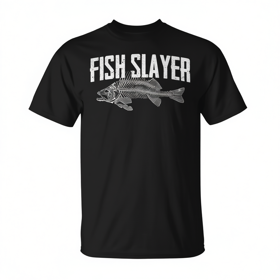 T-shirt da pesca Fish Slayer Nera Unisex Taglia adulto S M L XL XXL
