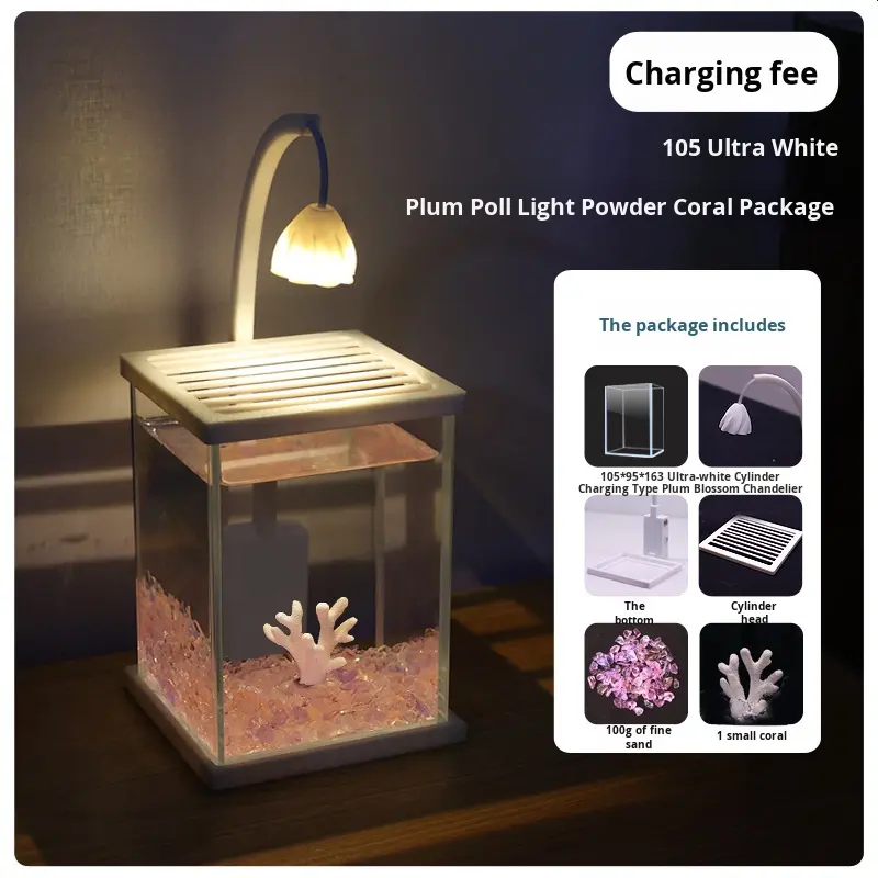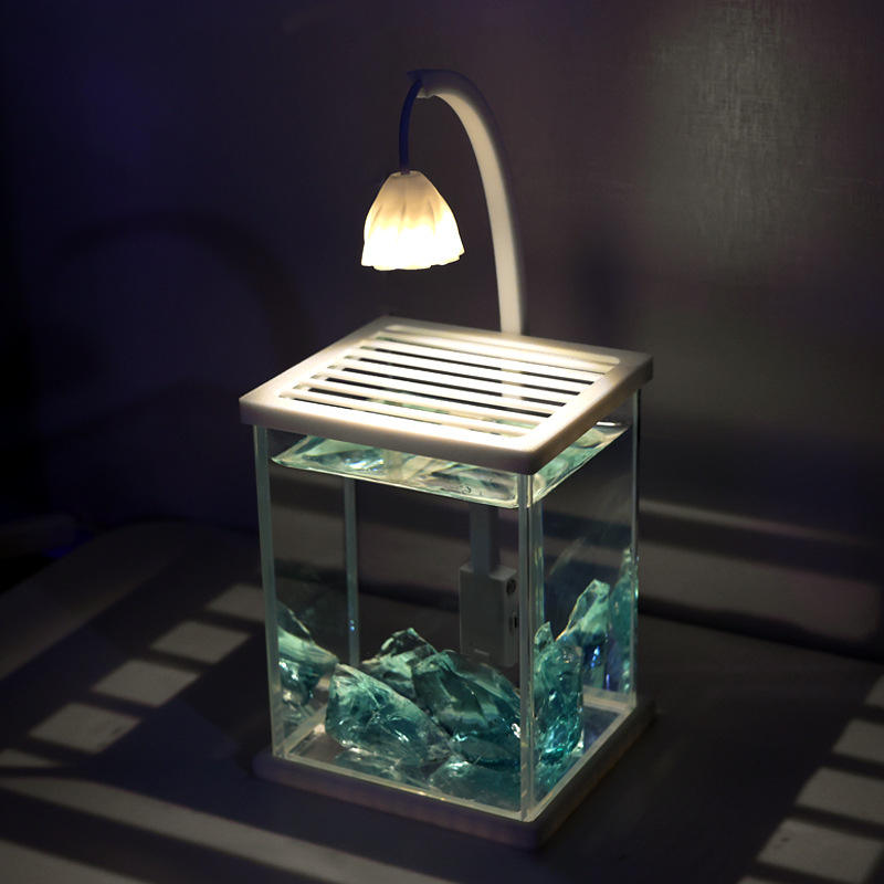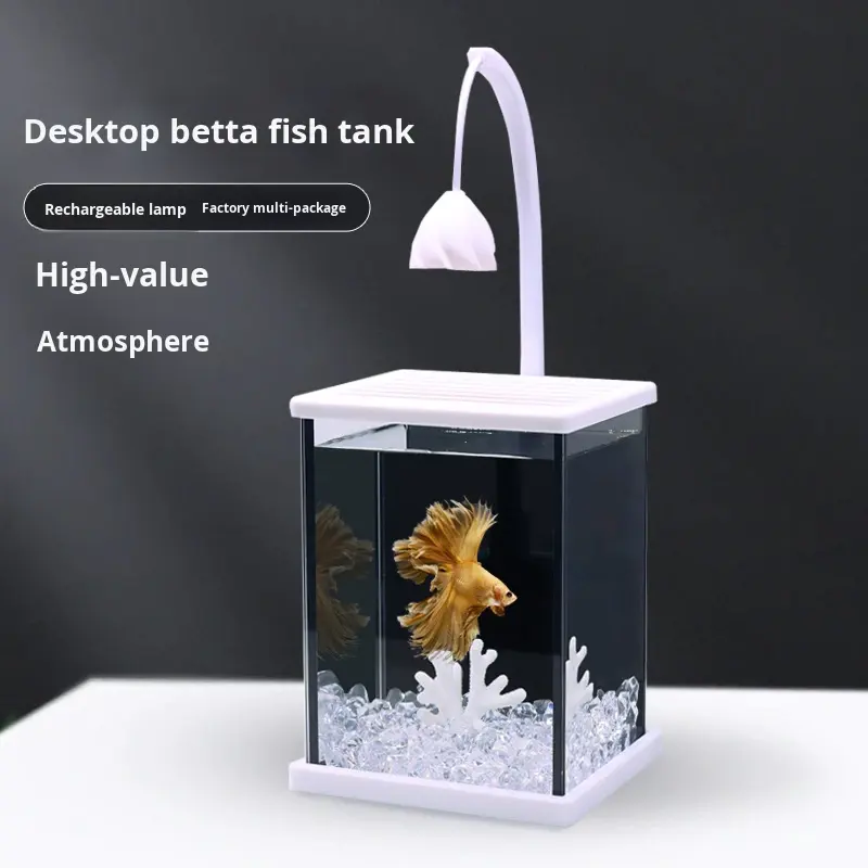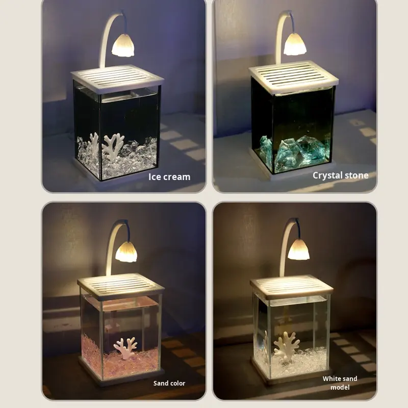 Acquario rettangolare in vetro con sfondo nero, kit di paesaggistica, creativo, da tavolo, per pesci Betta, ricaricabile, stile influencer