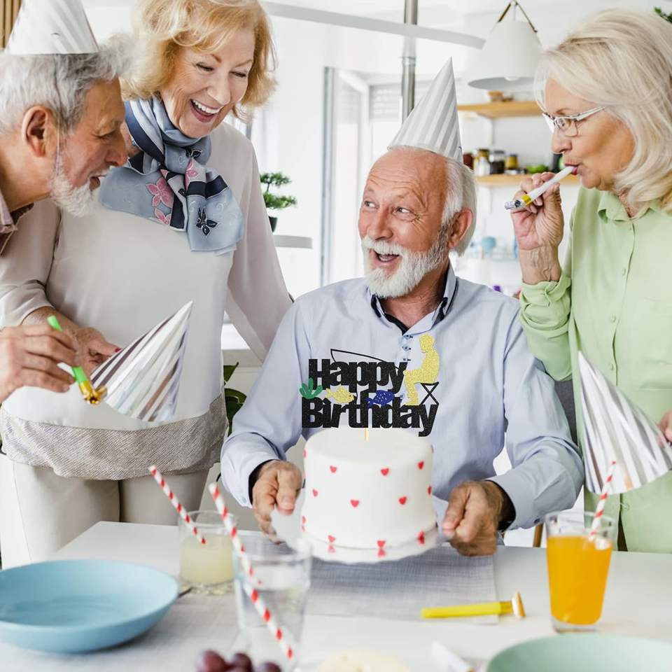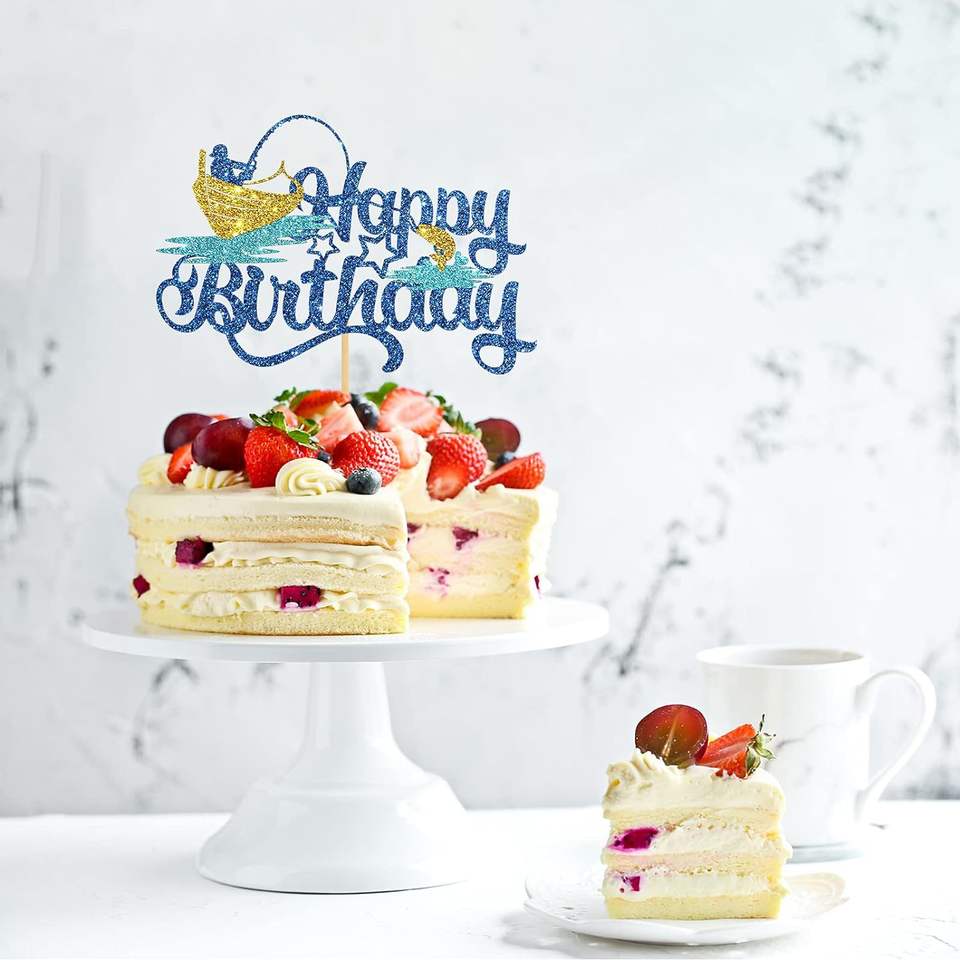 Fishing Cake Topper Fisherman Birthday Party Decorations Outdoor Fishing Cake Happy Birthday Topper for Boy Men