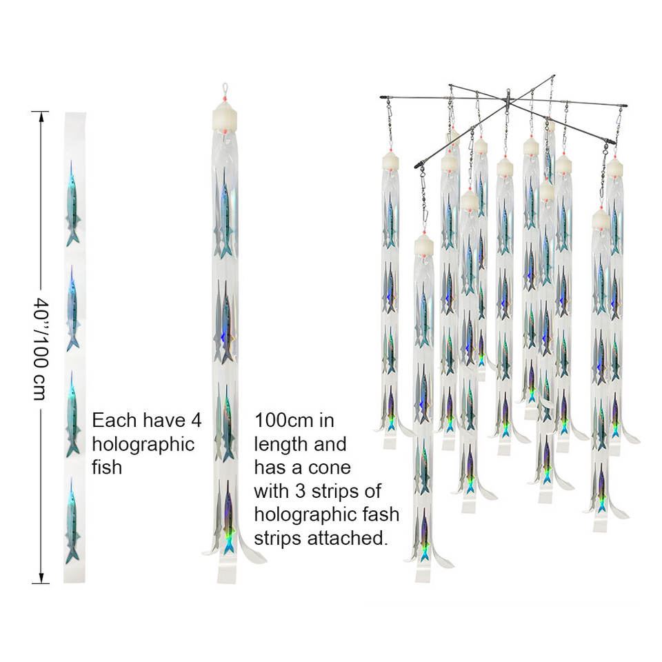 Fishing Dredge Teaser Stainless Dredge Bar Holographic Fish Strips Flash Dredge Offshore Big Game Fishing for Marlin Tuna